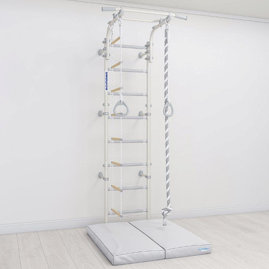 Универсальный комплект шведской стенки и мата позволит безопасно осуществлять физические нагрузки. Габариты комплекса предоставляют возможность организовать спортивную зону даже в небольшом помещении. Уникальные массажные ступени с противоскользящим покрытием мягко воздействуют на ступни, улучшая кровоснабжение и препятствуя развитию плоскостопия.Спортивный комплекс может применяться в домашних условиях с высотой потолка от 2,3 м.